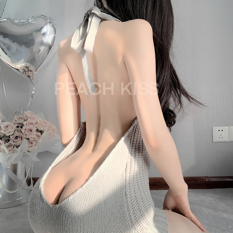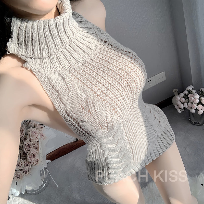 ふんわり暖かいニット素材で仕立てた、背中あきデザインのセクシーニットドレス。
